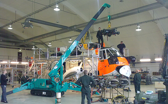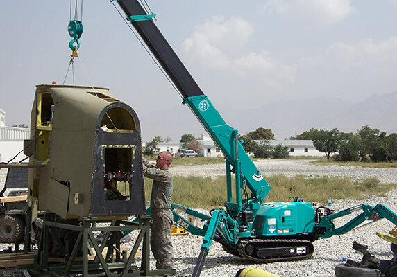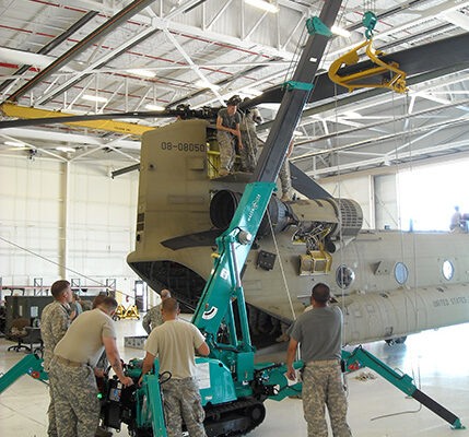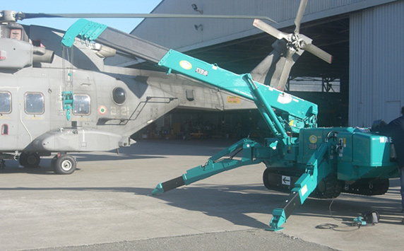 Pour les travaux de maintenance sur les hélicoptères militaires. Les mini-grues de MAEDA sont compactes et légères et sont donc souvent transportées dans des endroits éloignés pour être utilisées.Usages Multiples