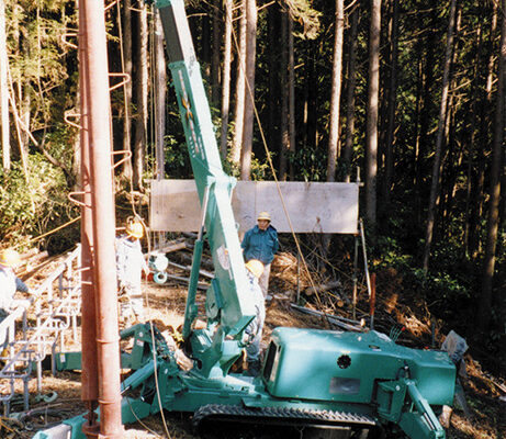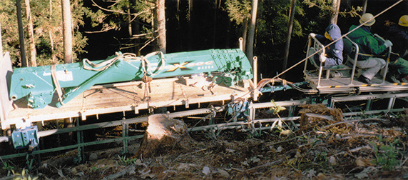 Même dans les montagnes où l'accès est difficile en raison du terrain accidenté et de l'absence de surfaces pavées, des mini-mini-grues MAEDA sont utilisées pour soulever les bois coupés.Usages Multiples
