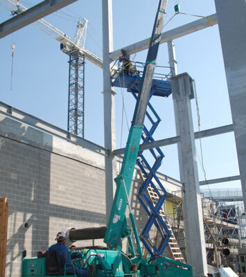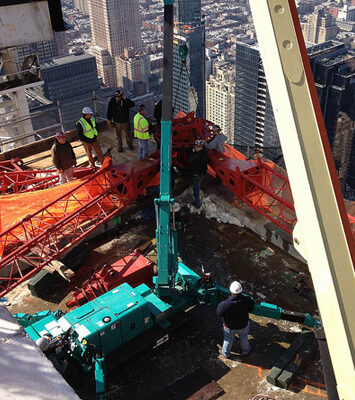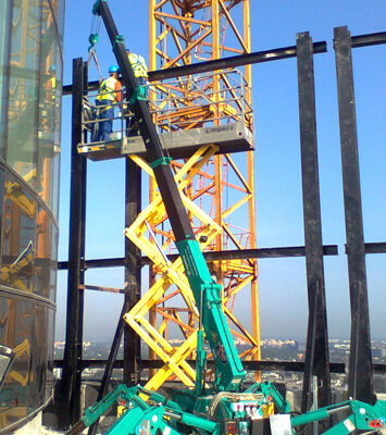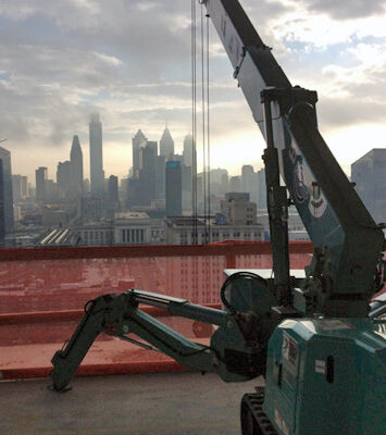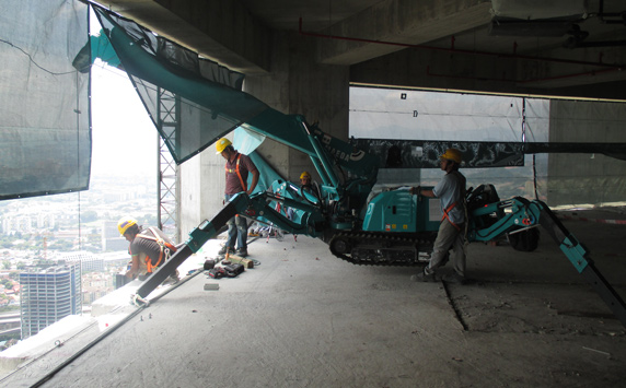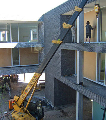 Les mini-grues MAEDA peuvent être transportées aux étages supérieurs des immeubles de grande hauteur par des ascenseurs de service, puis utilisées pour les travaux d'installation des murs extérieurs, tels que les châssis en verre, en hissant le câble métallique depuis le haut en plusieurs étapes. Il s'agit de l'une des applications les plus populaires pour les mini-grues qui peuvent créer des périodes de construction plus courtes et réduire les coûts en évitant l'utilisation de grues à tour coûteuses.Usages Multiples