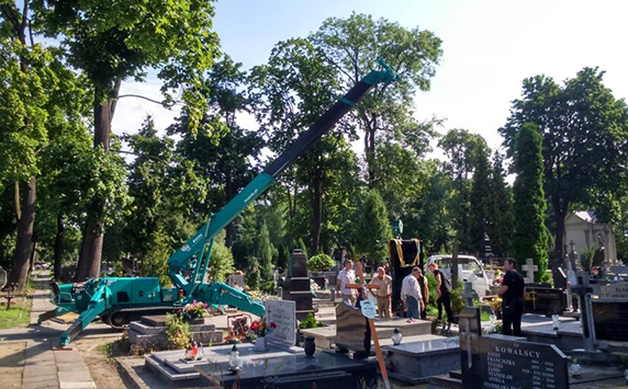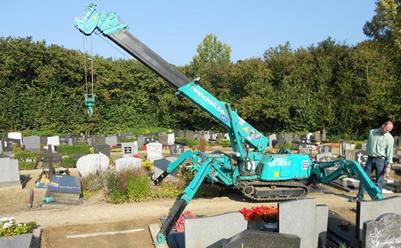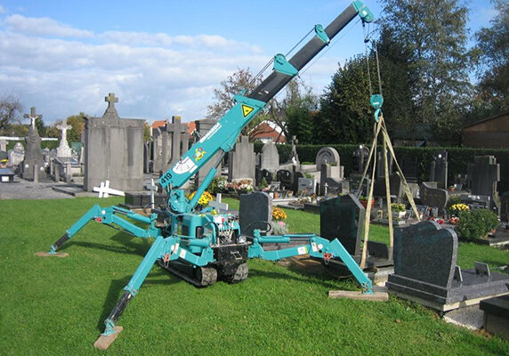 Les mini-grues MAEDA sont nées du besoin d'une machine permettant d'accéder aux passages extrêmement étroits des cimetières. Aujourd'hui, elles sont utilisées pour l'installation de pierres tombales, de pierres de jardin et de pierres monumentales dans le monde entier.Usages Multiples