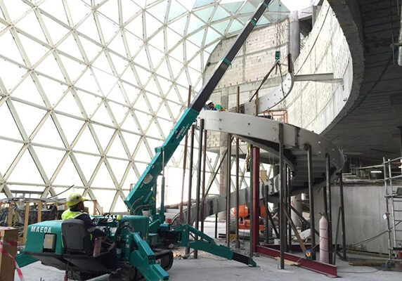 Pour l'installation d'œuvres d'art dans des bâtiments qui peuvent être difficiles d'accès comme les musées et les cours intérieures. La manœuvrabilité en douceur permet de manipuler des œuvres d'art délicates, et l'option d'alimentation par moteur électrique convient au travail en intérieur sans gaz d'échappement.Usages Multiples